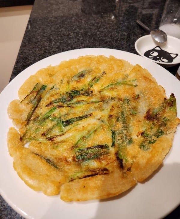A few days before that, I’d seen a video of someone making pajeon and, uncharacteristically, didn’t share it with the foodie friends group chat as an aspirational recipe I will never make. No - I actually went out and bought the ingredients, intending to make it on January 1st.